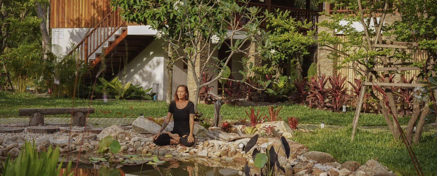 נתארח ביוגה-האוס, מרכז יוגה קסום בלב הגונגל של קופנגן, מוקף הרים, צמחיה טרופית, עצי קוקוס ונחל.